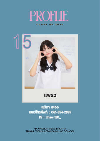15 15 แพรว เชิรีิกา ลีะออ เบอรี์โทรีศัพัท์ : 061-354-2895 IG : chae.ri20_