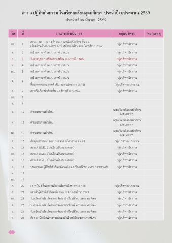 ตารางปฏิทินกิจกรรม โรงเรียนเตรียมอุดมศึกษา ประจำาปีงบประมาณ 2569