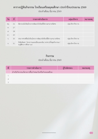 ตารางปฏิทินกิจกรรม โรงเรียนเตรียมอุดมศึกษา ประจำาปีงบประมาณ 2569