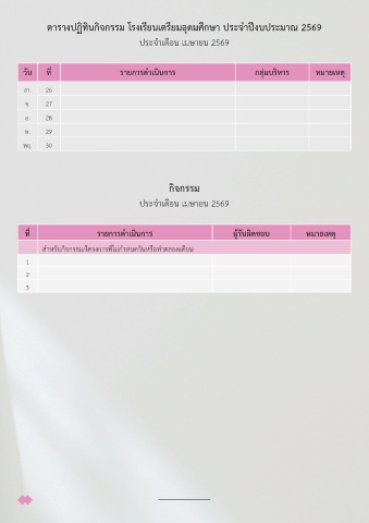 ตารางปฏิทินกิจกรรม โรงเรียนเตรียมอุดมศึกษา ประจำาปีงบประมาณ 2569