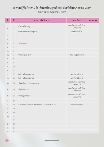 ตารางปฏิทินกิจกรรม โรงเรียนเตรียมอุดมศึกษา ประจำาปีงบประมาณ 2569
