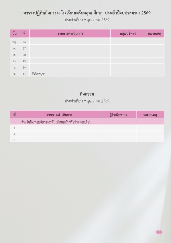 ตารางปฏิทินกิจกรรม โรงเรียนเตรียมอุดมศึกษา ประจำาปีงบประมาณ 2569
