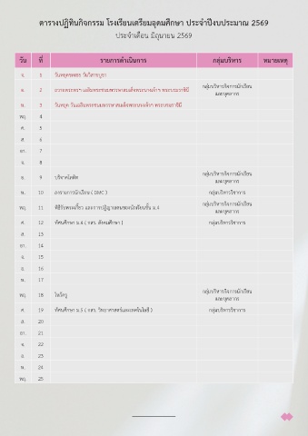 ตารางปฏิทินกิจกรรม โรงเรียนเตรียมอุดมศึกษา ประจำาปีงบประมาณ 2569