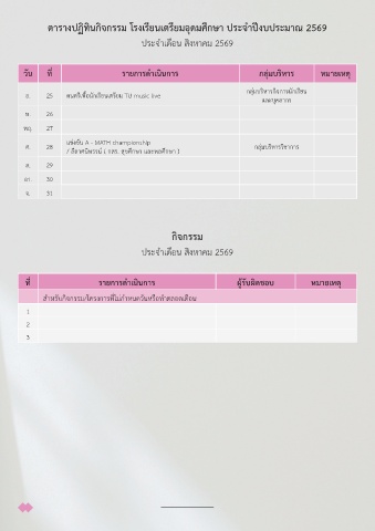 ตารางปฏิทินกิจกรรม โรงเรียนเตรียมอุดมศึกษา ประจำาปีงบประมาณ 2569