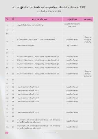 ตารางปฏิทินกิจกรรม โรงเรียนเตรียมอุดมศึกษา ประจำาปีงบประมาณ 2569