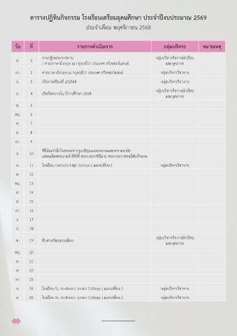 ตารางปฏิทินกิจกรรม โรงเรียนเตรียมอุดมศึกษา ประจำาปีงบประมาณ 2569