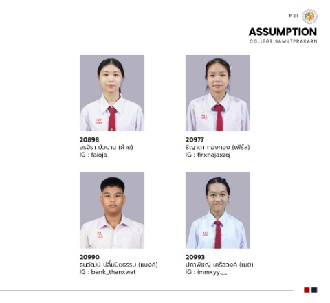 20898 20977 อิรจิรา บิ๊ัวบิ๊าน (ฝ้าย์) ธิญาดา กุอิงทัอิง (เฟิร์สุ) IG : faioja_ IG : firxnajaxzq 20990 20993 ิ ธนวัฒน์ ปั้ลื�มปั้ย์ธรรม (แบิ๊งค์) ปั้ภาพิชญ์ เครือิวงค์ (เมย์์) IG : bank_thanxwat IG : immxyy.__