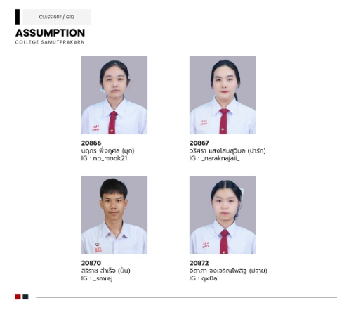CLASS 607 / G.12 20866 20867 ุ ้ นฤภร พ�งกุุศล (มกุ) วริศรา แสุงโสุมสุุวิมล (น่ารักุ) IG : np_mook21 IG : _naraknajaii_ 20870 20872 ำ สุริราช สุาเร็จ (ปั้้ � น) จิดาภา จงเจริญไพสุิฐ (ปั้ราย์) ิ IG : _smrej IG : qx0ai