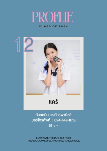 12 12 แคร์ ิ ั กลีย์กนิศ วิรีภูัทรีพัานชิย ์ เบอรี์โทรีศัพัท์ : 094-649-8765 IG : -