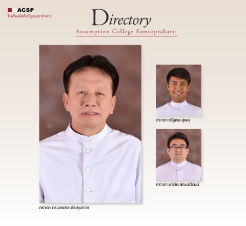 ACSP Directory โรงเรียนอัสสัมชัญสมุทรปราการ Assumption College Samutprakarn ภรัาดา ณ์ัฐพลั สัุพลั ิ ภรัาดา ม้าน์ติ สักน์ธวิัฒน์์ ภรัาดา ดรั.ม้ณ์ฑูลั ปรัะทัม้รัาช ุ