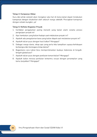 98 Ilmu Pengetahuan Alam dan Sosial SD/MI Kelas VI