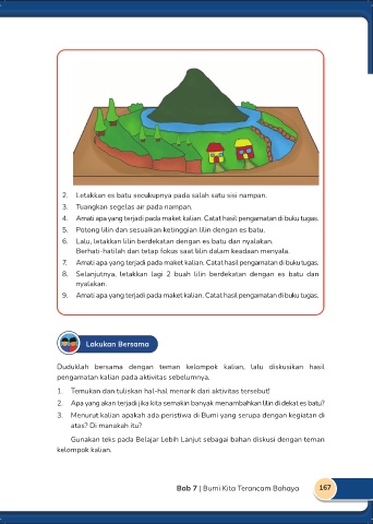 7. Amati apa yang terjadi pada maket kalian. Catat hasil pengamatan di buku tugas.