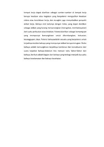 akibat kerja. Bahaya erat kaitanya dengan risiko, yang dapat diartikan