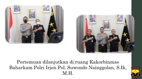 Pertemuan dilanjutkan di ruang Kakorbinmas Baharkam Polri Irjen Pol. Suwondo Nainggolan, S.Ik, M.H.