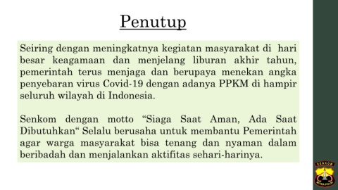 Senkom dengan motto “Siaga Saat Aman, Ada Saat