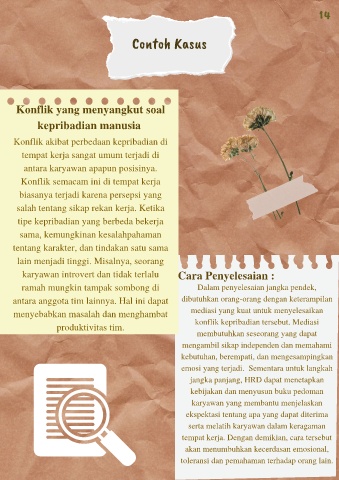 produktivitas tim. konflik kepribadian tersebut. Mediasi