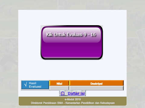 √ Hasil Nilai Deskripsi Evaluasi ⌂ Daftar Isi e-Modul 2019 Direktorat Pembinaan SMA - Kementerian Pendidikan dan Kebudayaan