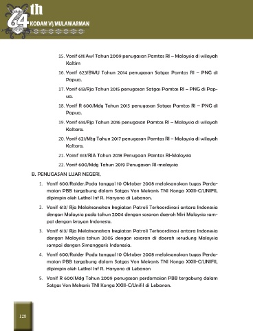 15. Yonif 611/Awl Tahun 2009 penugasan Pamtas RI – Malaysia di wilayah