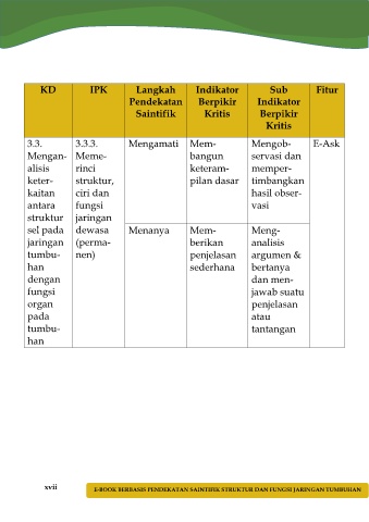 xvii E-BOOK BERBASIS PENDEKATAN SAINTIFIK STRUKTUR DAN FUNGSI JARINGAN TUMBUHAN