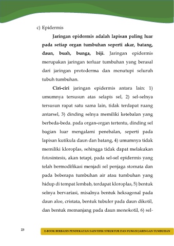 Ciri-ciri jaringan epidermis antara lain: 1)
