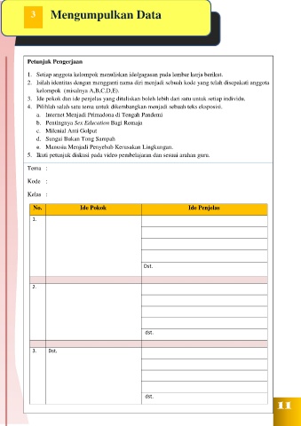 1. Setiap anggota kelompok menuliskan ide/gagasan pada lembar kerja berikut.