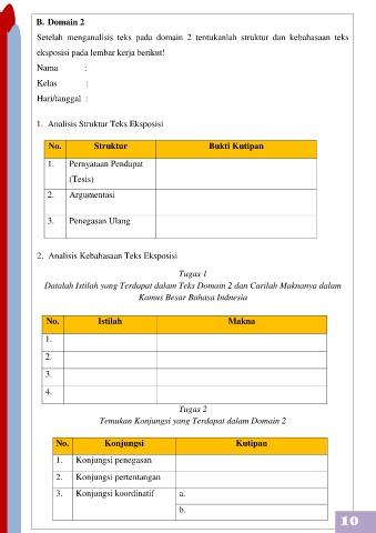 Setelah menganalisis teks pada domain 2 tentukanlah struktur dan kebahasaan teks