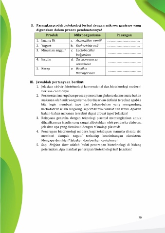 II. Pasangkan produk bioteknologi berikut dengan mikroorganisme yang