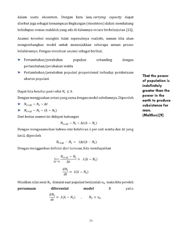 Dari kedua asumsi ini didapat hubungan (Malthus)[9]