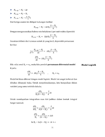 Bila nilai awal = , maka kita peroleh persamaan diferensial model Model Logistik