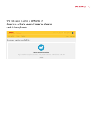 Una vez que se muestre la confirmación de registro, activa tu usuario ingresando al correo electrónico registrado. FAQ MyDHL+ 12