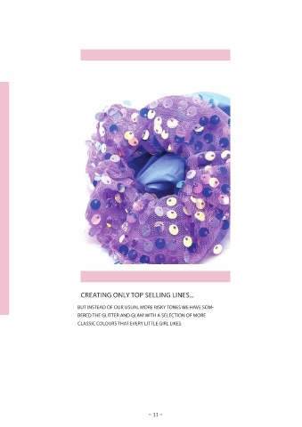CREATING ONLY TOP SELLING LINES... BUT INSTEAD OF OUR USUAL MORE RISKY TONES WE HAVE SOM- BERED THE GLITTER AND GLAM WITH A SELECTION OF MORE CLASSIC COLOURS THAT EVERY LITTLE GIRL LIKES. - 33 -