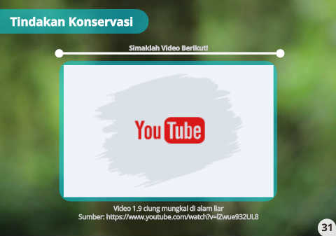 Tindakan Konservasi Simaklah Video Berikut! Video 1.9 ciung mungkal di alam liar Sumber: https://www.youtube.com/watch?v=lZwue932UL8 31