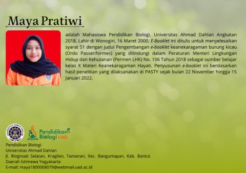 adalah Mahasiswa Pendidikan Biologi, Universitas Ahmad Dahlan Angkatan
