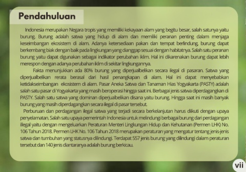 Fakta menunjukkan ada 80% burung yang diperjualbelikan secara ilegal di pasaran. Satwa yang