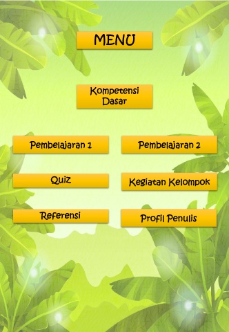 MENU Kompetensi Dasar Pembelajaran 1 Pembelajaran 2 Quiz Kegiatan Kelompok Referensi Profil Penulis