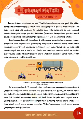 Perhatikan gambar G (1), menurut kalian kendaraan mana yang memiliki energi kinetik