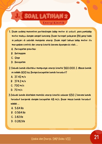 ia pelajari di sekolah mengenai energi. Ehsan ingat bahwa balap motor itu