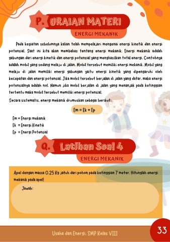 Pada kegiatan sebelumnya kalian telah mempelajari mengenai energi kinetik dan energi