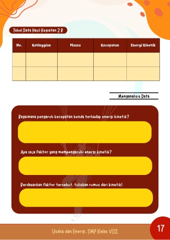 No. Ketinggian Massa Kecepatan Energi Kinetik