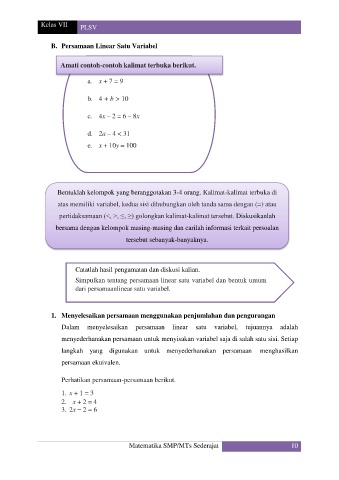 1. Menyelesaikan persamaan menggunakan penjumlahan dan pengurangan