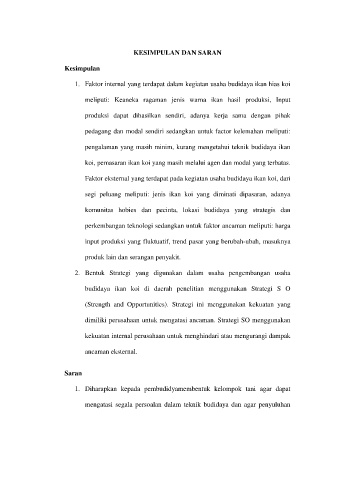 budidaya ikan koi di daerah penelitian menggunakan Strategi S O
