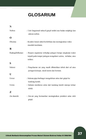 GLOSARIUM 37 E-Book Berbasis Keterampilan Proses Materi Sistem Ekskresi Kelas XI SMA/MA