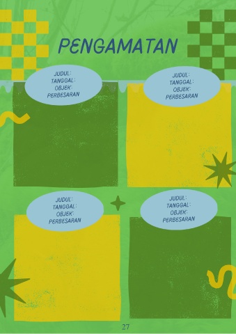 PENGAMATAN Judul: Judul: tanggal: tanggal: objek: objek: perbesaran perbesaran Judul: Judul: tanggal: tanggal: objek: objek: perbesaran perbesaran 27