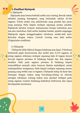 setiap segmen. Contoh: Kelabang (Lithobius forficatus), dan Lipan
