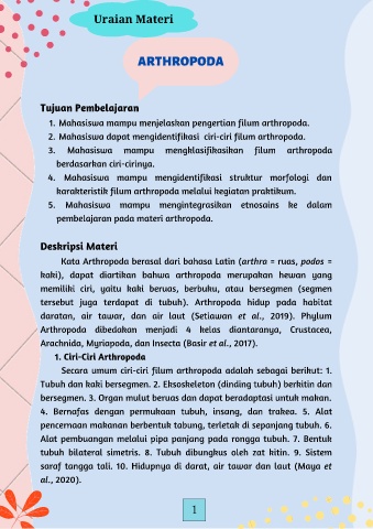 karakteristik filum arthropoda melalui kegiatan praktikum.