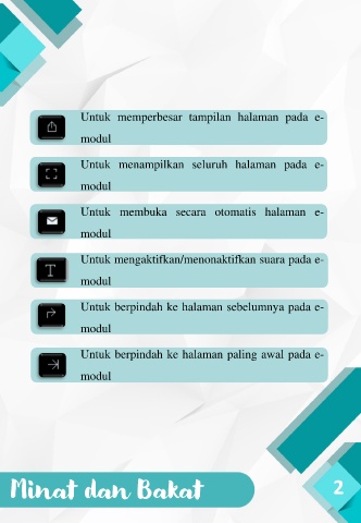 Untuk mengaktifkan/menonaktifkan suara pada e-