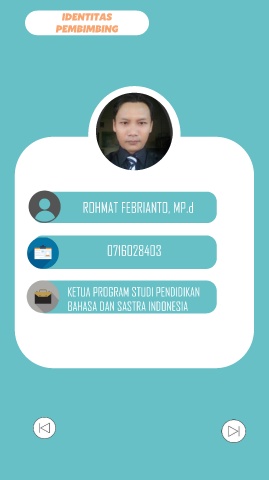 IDENTITAS PEMBIMBING ROHMAT FEBRIANTO, MP.d 0716028403 KETUA PROGRAM STUDI PENDIDIKAN BAHASA DAN SASTRA INDONESIA