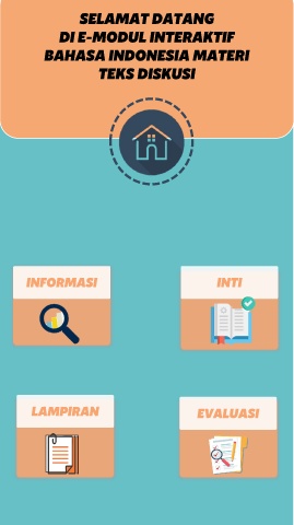 SELAMAT DATANG DI E-MODUL INTERAKTIF BAHASA INDONESIA MATERI TEKS DISKUSI INFORMASI INTI LAMPIRAN EVALUASI