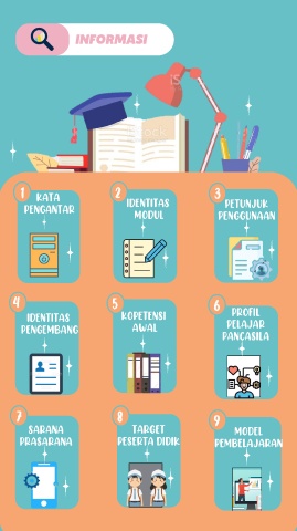 INFORMASI 1 2 3 KATA IDENTITAS PETUNJUK PENGANTAR MODUL PENGGUNAAN 4 5 6 PROFIL IDENTITAS KOPETENSI PELAJAR PENGEMBANG AWAL PANCASILA 7 8 9 SARANA TARGET MODEL PRASARANA PESERTA DIDIK PEMBELAJARAN
