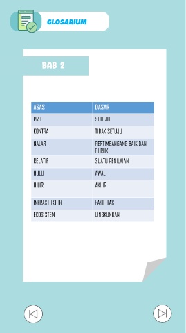 GLOSARIUM ASAS DASAR PRO SETUJU KONTRA TIDAK SETUJU NALAR PERTIMBANGANG BAIK DAN BURUK RELATIF SUATU PENILAIAN HULU AWAL HILIR AKHIR INFRASTUKTUR FASILITAS EKOSISTEM LINGKUNGAN